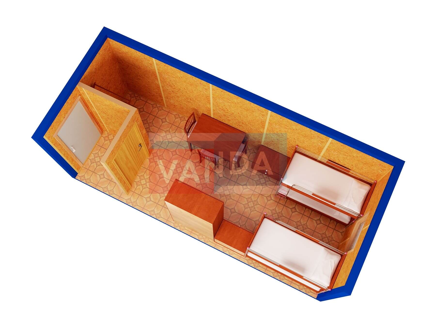 Металлическая бытовка распашонка 5,85 x 2,4 - Оргалит ДВП